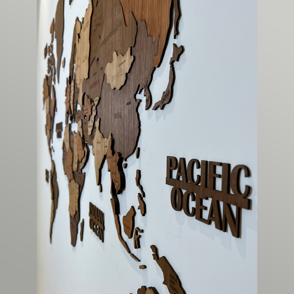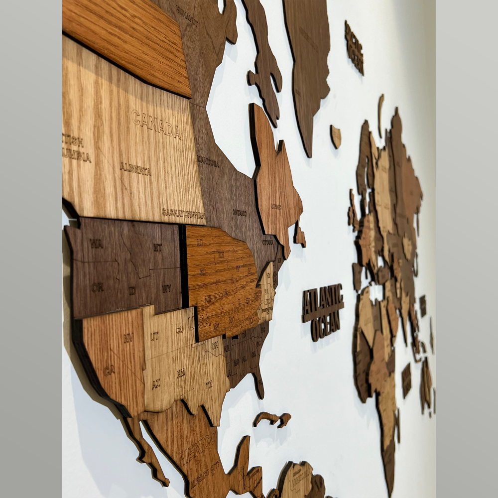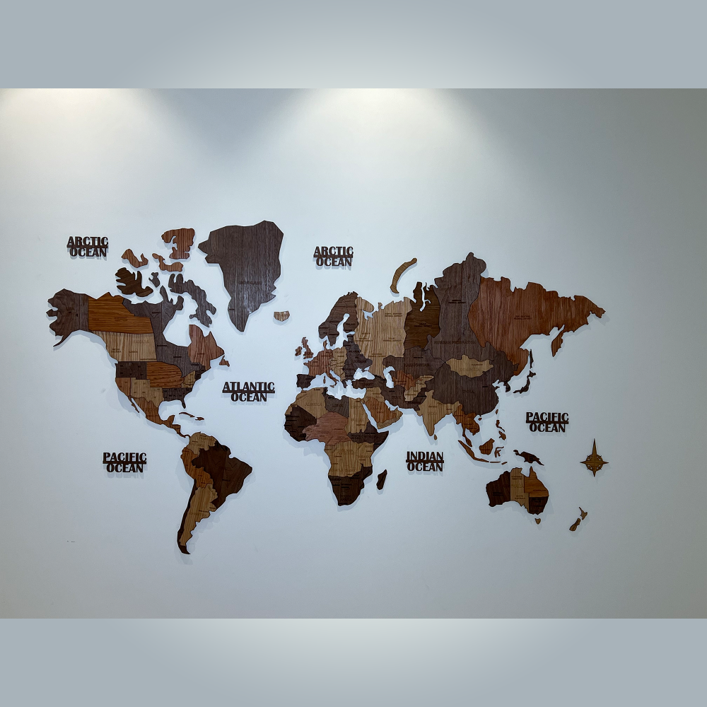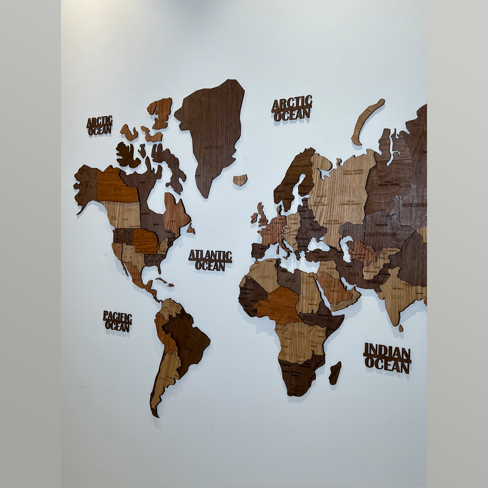 متعددة الالوان, 3 طبقات من الخشب موزعة لتعطي شكل دول العالم
